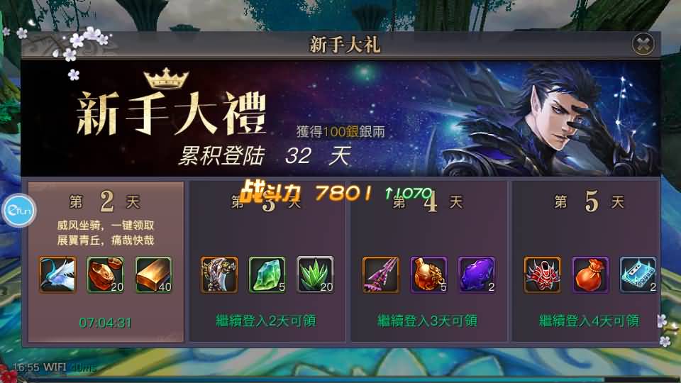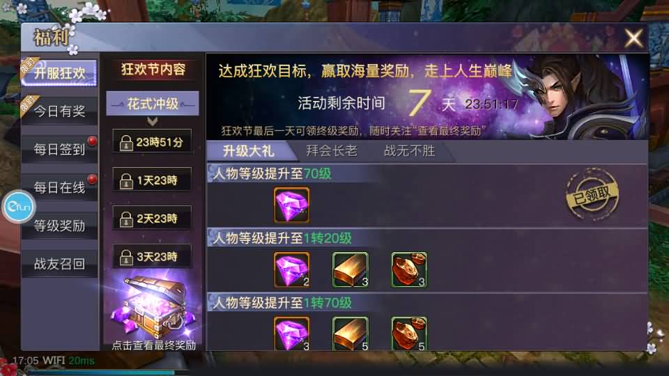 3、修改每日签到送10万钻石、在线120分钟送30万钻石、升级奖励赠送800万钻石(活动领取)
