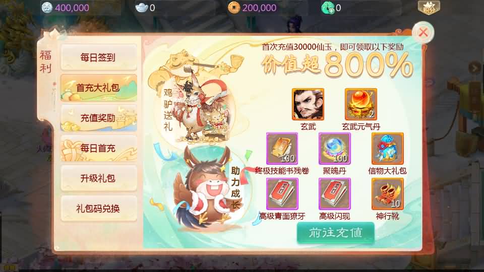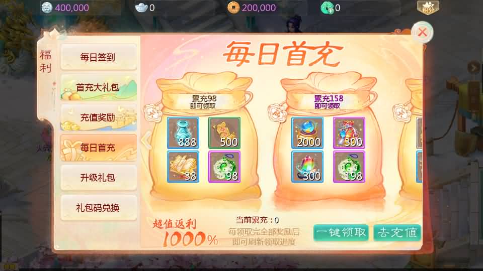6、所有礼包开启生效