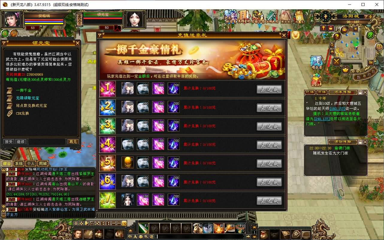 【特色】新时装,坐骑,幻饰,附体200件全部免费切换全部同步官方【特色2】侍女系统,可将天龙美人纳入后宫【特色3】送20亿元宝+绑元,送4件重楼送顶级宝石
