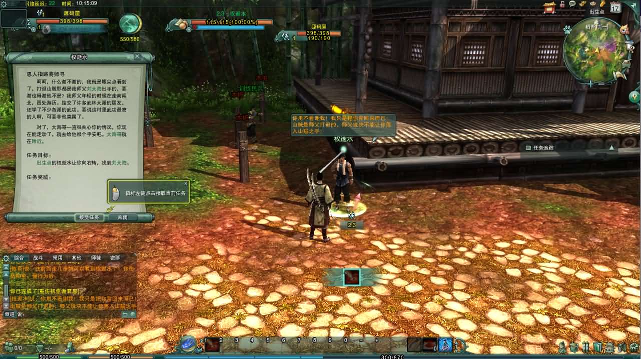 更新5、10级出了新手村找武学老师学技能,回春妙手改成了你忠诚的小伙伴,猛虎下山改成你掐死你的小伙伴(原打坐需要脱战才可。这个太老火了)。