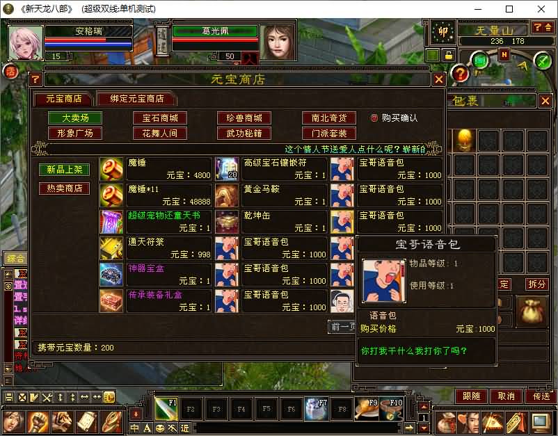 - 经典武侠端游【天龙八部之迷哥2024新版怀旧】2026最新整理单机一键即玩镜像端+Linux手工服务端+PC客户端+GM工具+详细搭建教程 2026-01-24