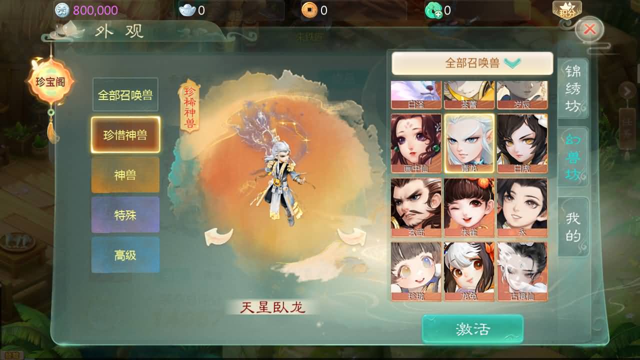 11.加强所有珍惜神兽,修改青龙秒10!