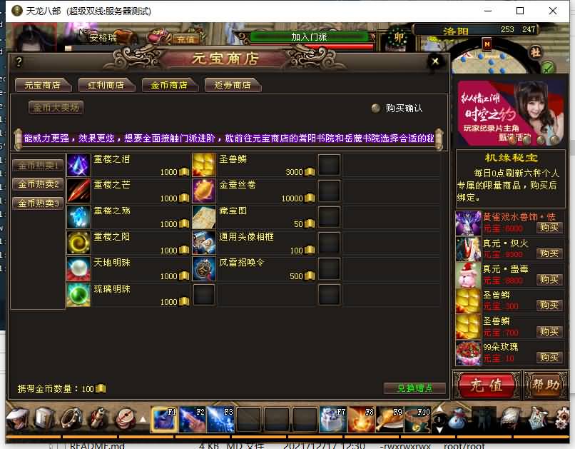 - 经典武侠端游【天龙八部之花落恶人谷真实大背包天机锦囊】最新整理单机一键即玩镜像端+Linux手工服务端+PC客户端+GM工具+详细搭建教程 2026-01-23